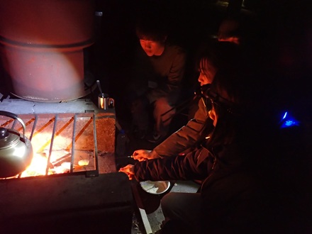22時には、建物の明かりを消して、本格的に、たき火の火だけで活動していきます。